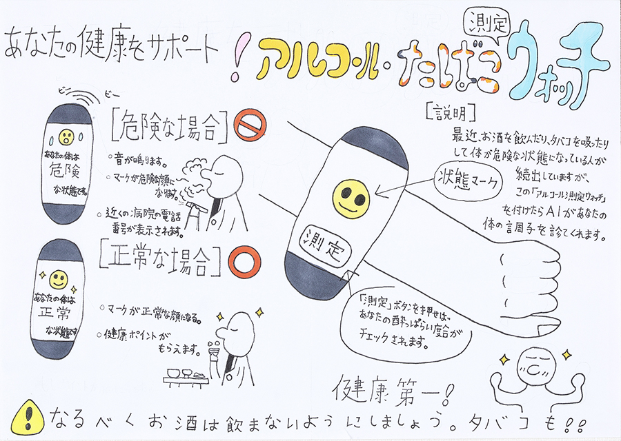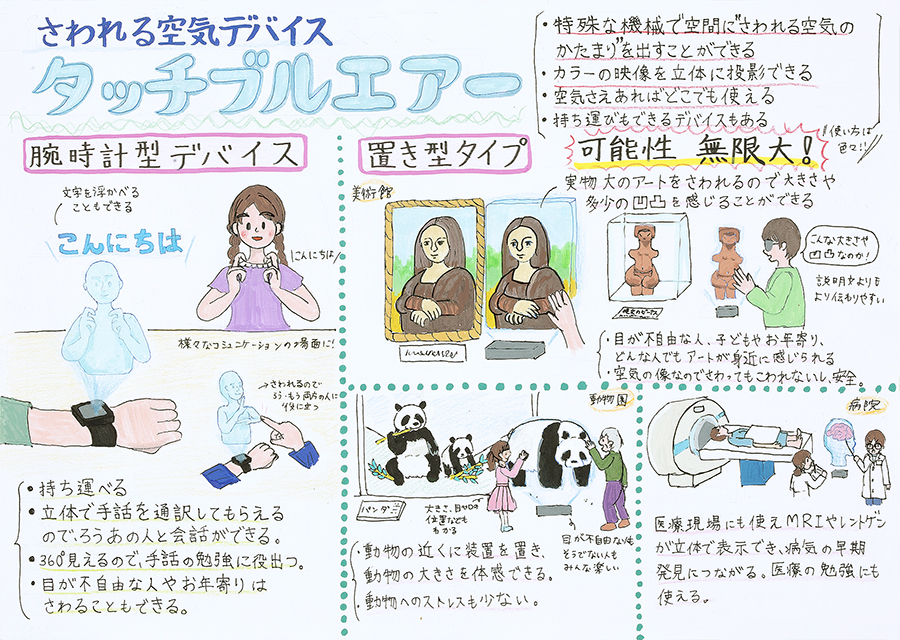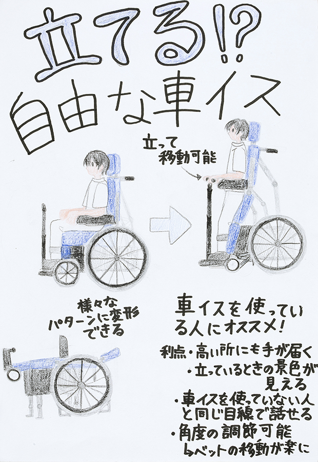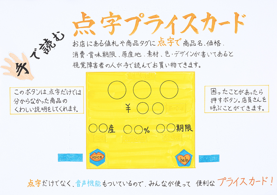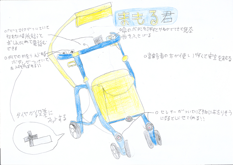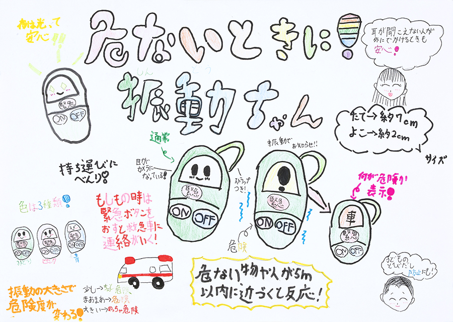できる部屋づくりや、身近な道具・用具、また安全に外出を楽しめる環境づくりなど、様々な「安全・快適アイディア」を小中学生から絵と文字で表現してもらいます。弱者からのニーズを見つける貴重なヒントとなり、また、子どもたちの”こころ”を育てています。年1回、学校単位で応募を受け、有識者の審査により選考された入賞作品は当財団広報誌『WITH LIFE(ウィズライフ)』に掲載、また、公共スペースにて公開展示しています。